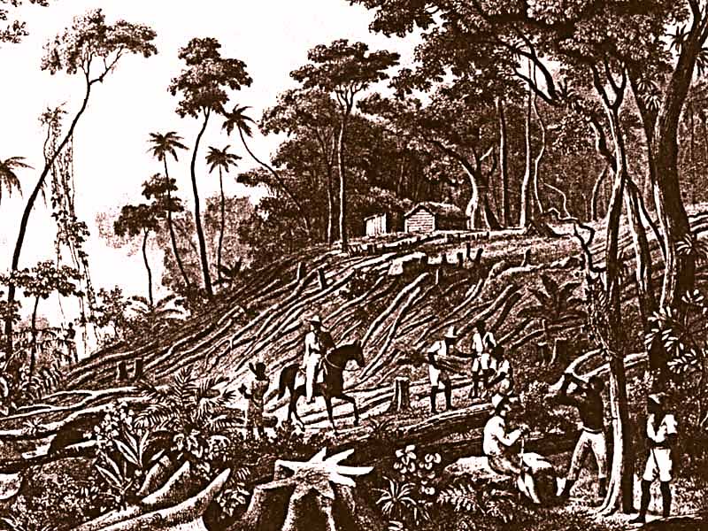 Cafe.JPG (155.61 Kb - 800 x 600) A plantação de café iria modificar o fazendeiro mineiro tradicional. Desloca-se do vale direito do rio Paraiba na segunda metade do século XIX. Os primeiros grupos começaram a chegar pelos afluentes. Filhos e netos de mineiros regressavam à província materna. O latifúndio exaurira o solo fluminense e avançava tragando novas terras com o negro e o café. |