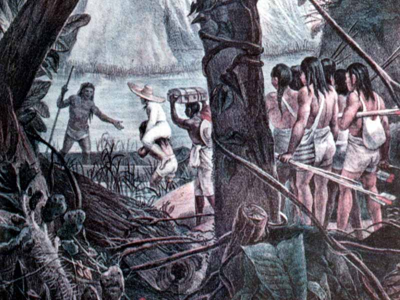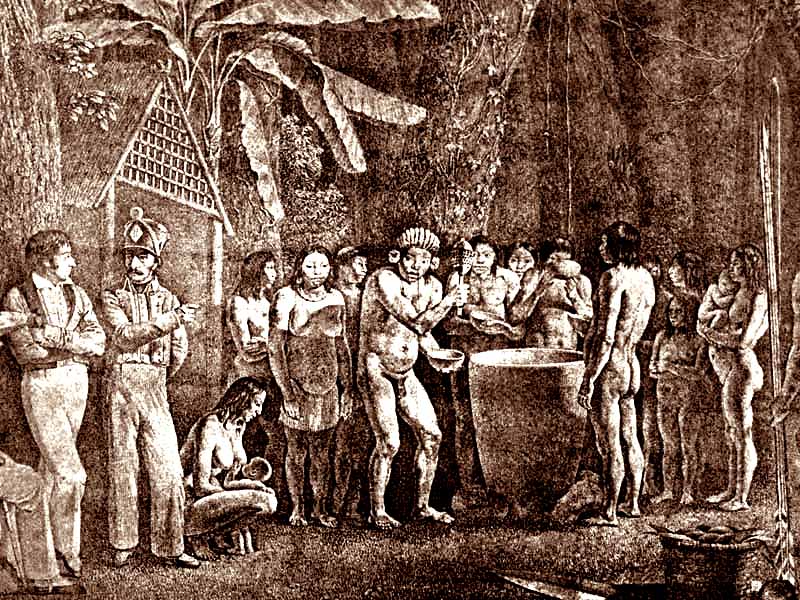 Índios Purís recebem os catequisadores.JPG (150.23 Kb - 800 x 600) Os caminhos e picadas foram se multiplicando. Da Borda do Campo (Barbacena) aos diversos aldeamentos do Padre Manuel de Jesus Maria. |