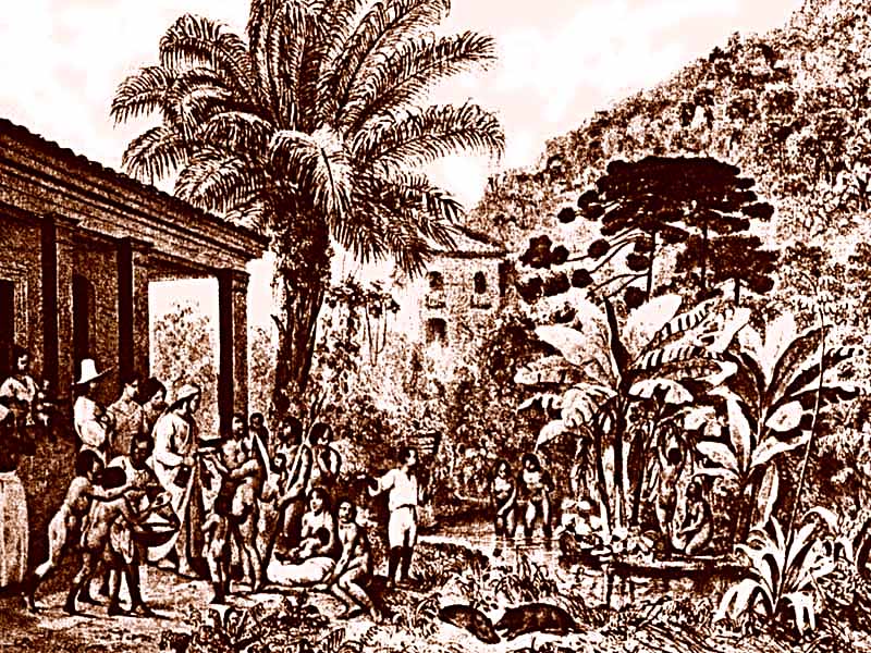 Indios aproximam-se das fazendas.JPG (109.38 Kb - 800 x 600) Para povoar o território multiplicam-se as concessões de sesmarias no curso do século XVIII. A decadência da mineração acabaria alterando a política metropolitana. |