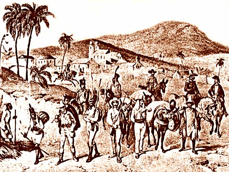 A Batalha com os Sertanistas.JPG (107.80 Kb - 800 x 600) Já na fase mineradora tem início o devassamento das chamadas Áreas Proibidas. A aventura partia do sertão, desafiando a densidade da mata e a suspeita do descaminho. |
