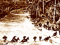 Tropeiros atravessando rio na Zona da Mata